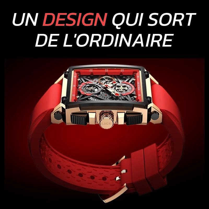 - Confort Suprême : Boîtier en acier et bracelet doux en gel de silice.